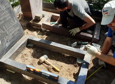 Далее восстановили уже существующую дорожку к месту захоронения, выполненную из бетонной плитки.