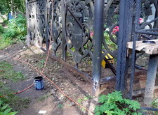 В данном заказе мы столкнулись со следующей проблемой: из металлического ограждения, опоясывавшего периметр участка, была украдена секция. Нижняя же часть ограждения практически полностью прогнила, а потому и остальные элементы узора грозили в скором времени банально выпасть.