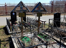 Ещё одна классическая уборка места захоронения. Отсыпанный крошкой участок замусорился, цветники поросли сорняком, металлическая оградка и кресты запылились.